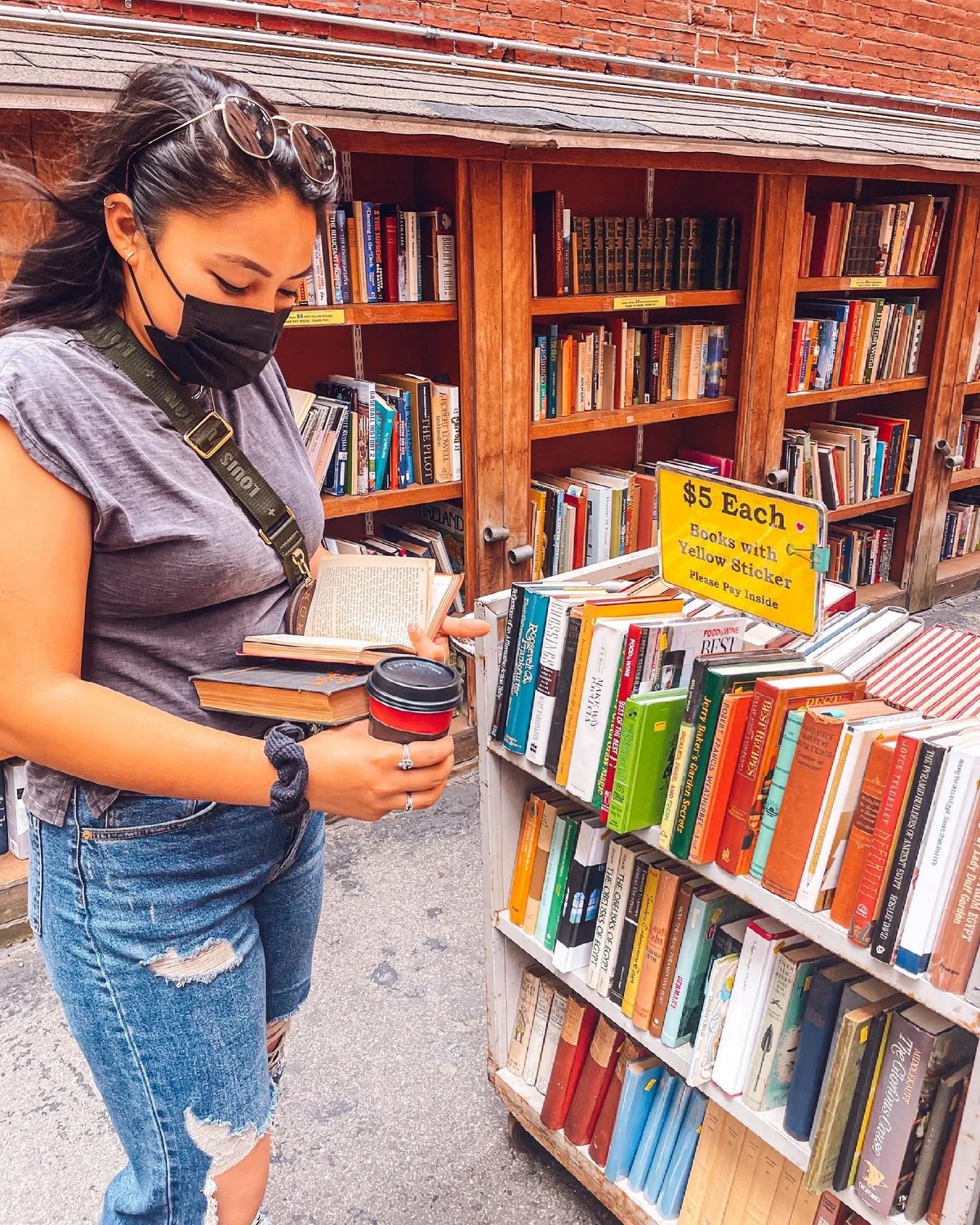 On my first visit to Boston in early 2021, there were still many Covid restrictions in place and masks were pretty much required at all venues. In the photo above, I took my mask off just for the quick photo in front of the famous Brattle Bookshop. During my visit in 2021, the tourist population was pretty low and most places (that were allowing visitation/seating) were easily attainable without a reservation. When I went back this year (2022), Covid restrictions were no longer in place and the city felt so much more alive with the crowded streets and public transport. It was pretty neat getting to explore Boston in both seasons.